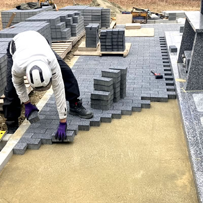 遠賀霊園合葬簿建立工事にて黒崎播磨株式会社の瓦入り平板(クロサキLSペイブ)を施工