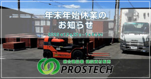株式会社 プロステック 年末年始の休業に関するご案内。休業期間:2025年12月27日(土)~2026年1月4日(日)まで休業いたします。