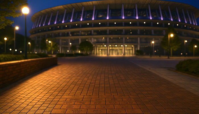 スタジアムや競技場、アリーナなどの大規模スポーツ施設では、広大な敷地の中に活用しきれていない空きスペースが生まれることがあります。そこで注目されているのが「刻印れんが」を用いた市民参加型プロジェクトですね。